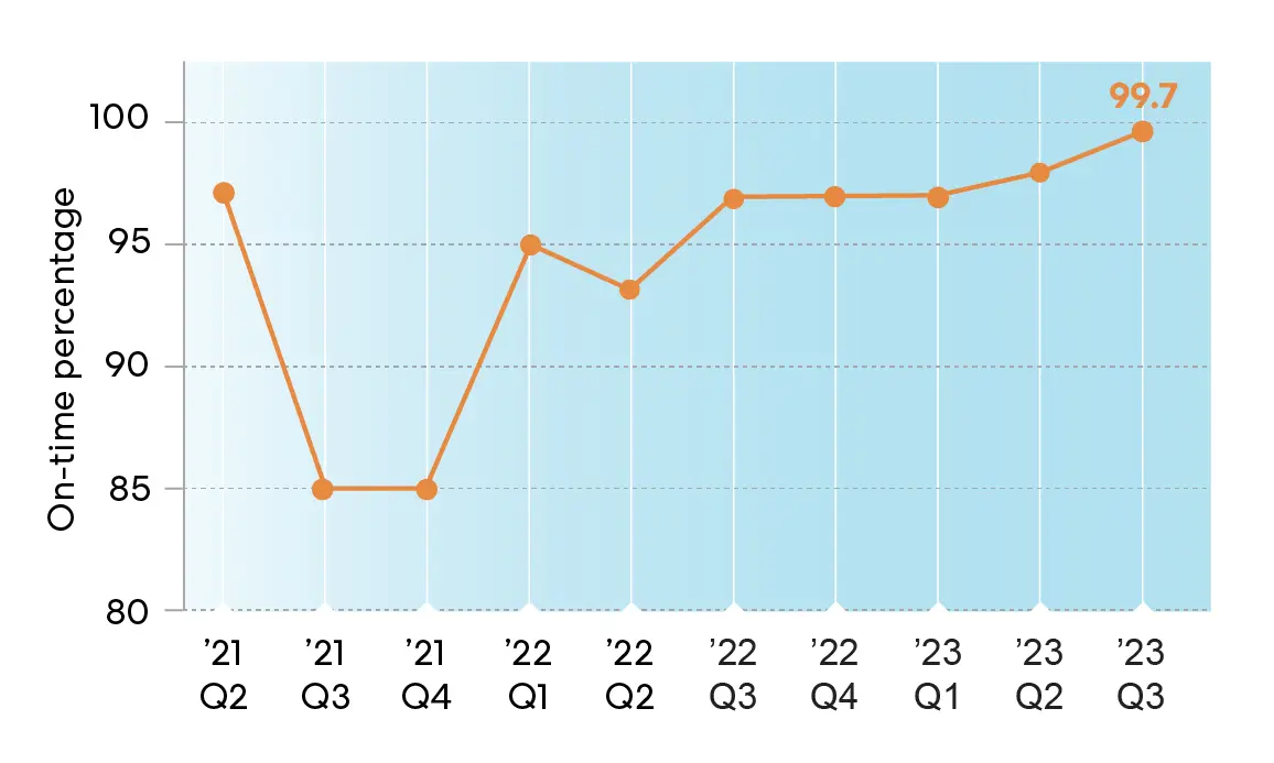 D11 was able to increase on-time bus and vehicle arrival rates from 85% to 99%, recovering over 17,000 hours for D11 students in the classroom. More time spent learning, not commuting, will mean better educational outcomes for D11 students.