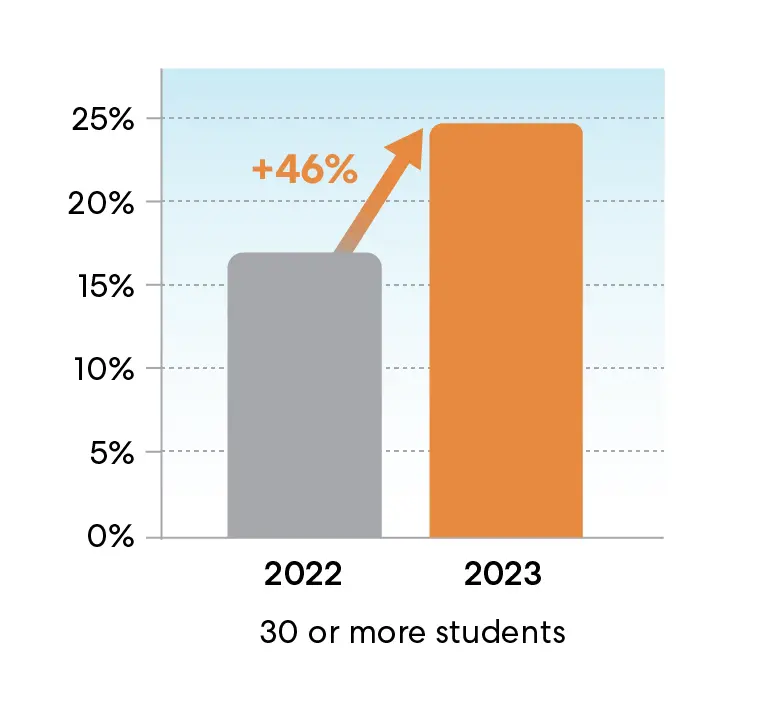 With HopSkipDrive support, D11 further consolidated bus routes to return to balanced operations during the 2023-2024 school year, with 62 drivers and 55 optimized bus routes. As part of a data-driven route optimization, D11 replaced underutilized routes with HopSkipDrive rides, enabling D11’s bus drivers to drive fuller buses, all without increasing operating budget.